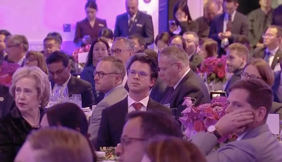 △當(dāng)?shù)貢r間11月15日晚,習(xí)近平主席在美國友好團(tuán)體聯(lián)合歡迎宴會上發(fā)表演講。圖為參加宴會的人士認(rèn)真聆聽演講。
