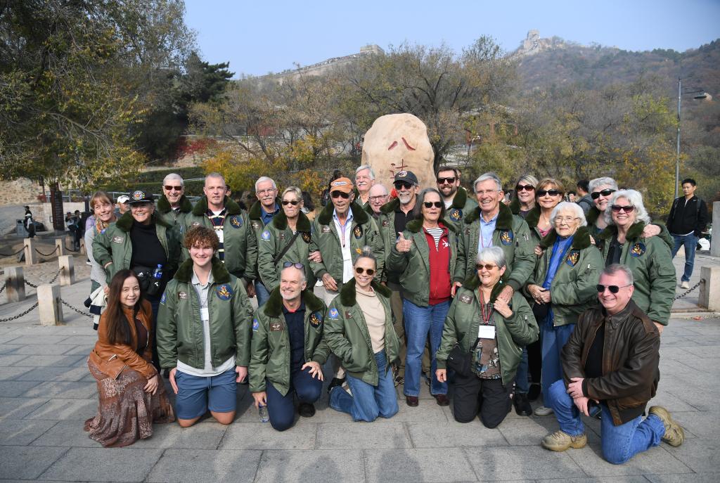10月29日,飛虎隊老兵莫耶一行人在北京八達(dá)嶺長城合影留念。當(dāng)日,美中航空遺產(chǎn)基金會訪華代表團(tuán)成員陸續(xù)抵達(dá)北京。新華社記者任超攝