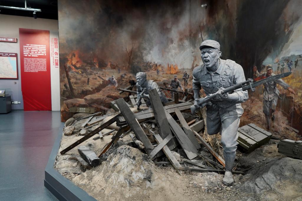 這是近日拍攝的新四軍紀(jì)念館內(nèi)的鐵軍忠魂雕塑。新華社記者 李博 攝