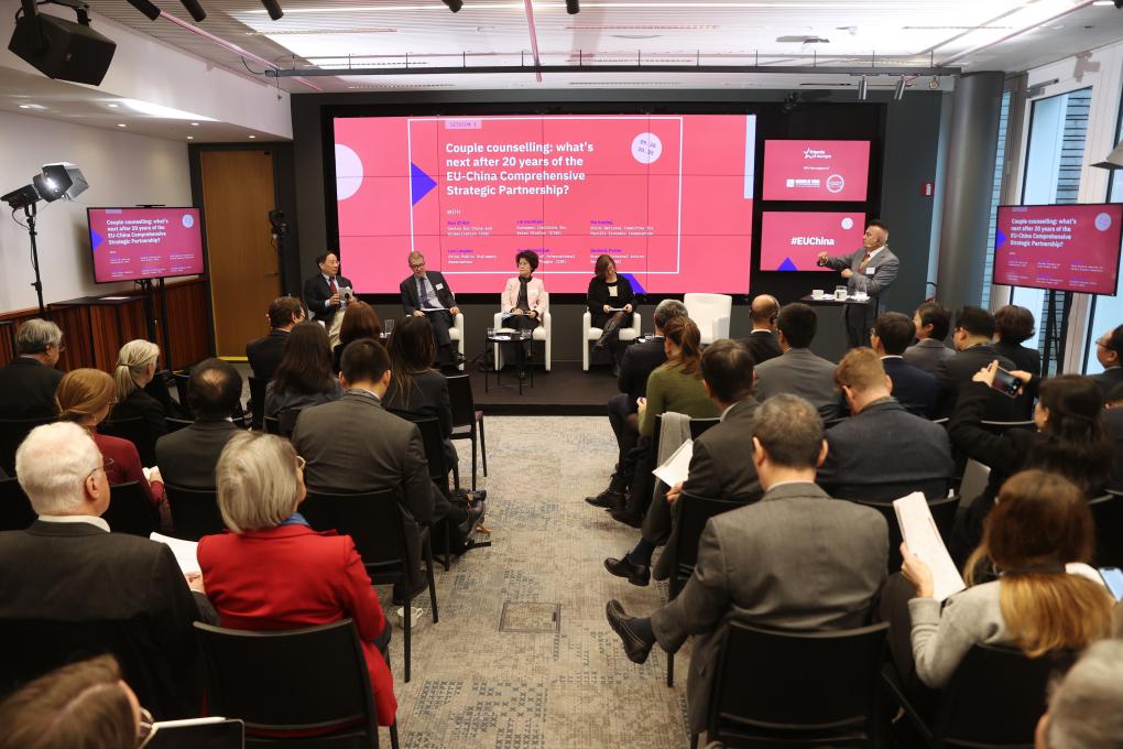 這是11月23日在比利時(shí)布魯塞爾拍攝的第十一屆中歐論壇現(xiàn)場(chǎng)。新華社記者趙丁喆 攝
