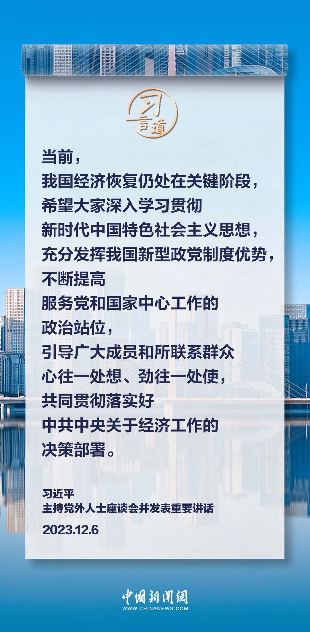 12月6日,中共中央在中南海召開黨外人士座談會,就今年經(jīng)濟形勢和明年經(jīng)濟工作聽取各民主黨派中央、全國工商聯(lián)負責(zé)人和無黨派人士代表的意見和建議。中共中央總書記習(xí)近平主持座談會并發(fā)表重要講話。