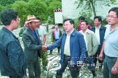 胡昌升在丹巴縣東谷鄉(xiāng)泥石流災(zāi)害現(xiàn)場(chǎng)察看災(zāi)情、指導(dǎo)救災(zāi)工作、慰問受災(zāi)群眾。