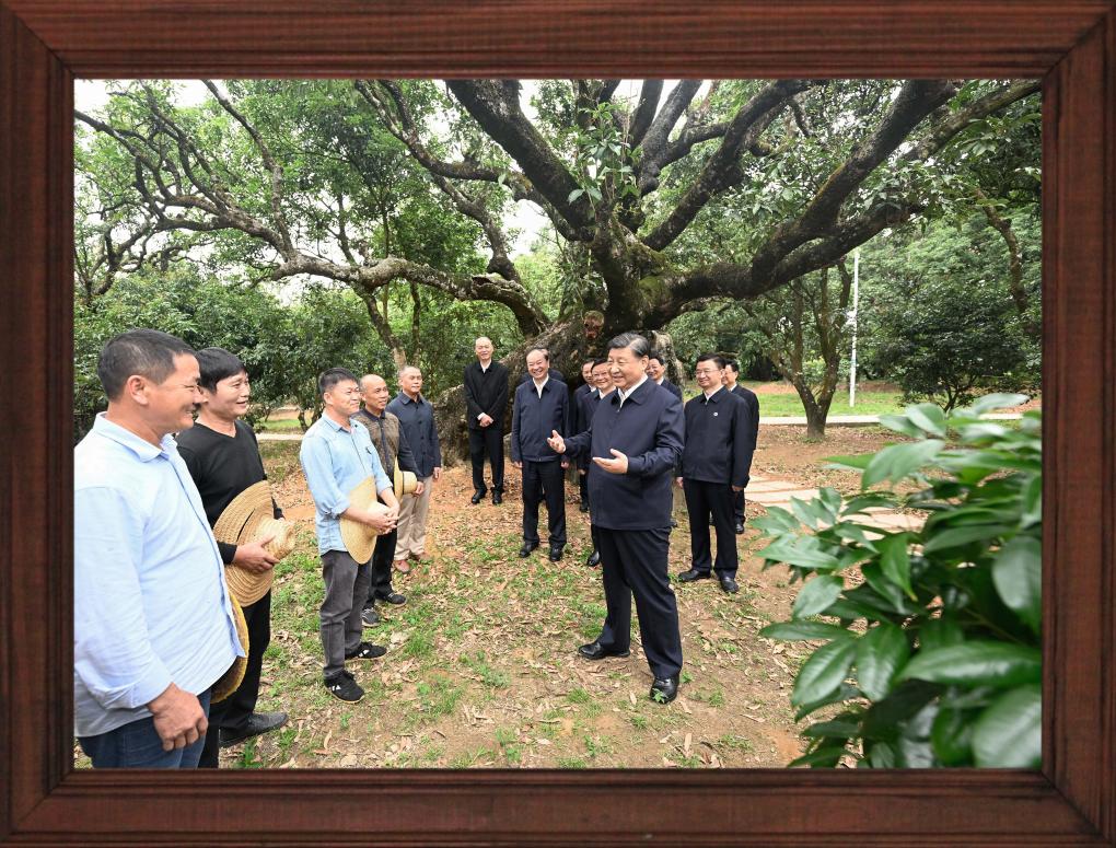 12月31日晚,國(guó)家主席習(xí)近平發(fā)表二〇二四年新年賀詞。 推近、定格、銘記,透過(guò)總書(shū)記身后書(shū)架上的一張張照片,我們記住過(guò)去,也對(duì)未來(lái)充滿信心。 不變的情懷 幾張老照片,在書(shū)架上擺放多年,人們已經(jīng)非常熟悉。 習(xí)近平同志青年時(shí)期的軍裝照,連續(xù)第3年出現(xiàn),擺放在書(shū)架醒目位置。 這令人不由得想起10年前的一段暖心對(duì)話—— 2013年11月,湖南十八洞村,村民石拔三老人見(jiàn)到了來(lái)此考察的習(xí)近平總書(shū)記。 “怎么稱呼您?”“我是人民的勤務(wù)員?!?/p> 歲月流轉(zhuǎn),初心不改。從照片上的青年,到人民的勤務(wù)員,“我將無(wú)我,不負(fù)人民”的赤子情懷始終如一。 家庭是個(gè)人溫馨的港灣。習(xí)近平同志一家三口和父親習(xí)仲勛在一起、習(xí)近平同志在福州時(shí)帶女兒玩的照片,自總書(shū)記第一次發(fā)表新年賀詞以來(lái),就一直擺在書(shū)架上。 2023年,又有幾張新的總書(shū)記家庭照片映入眼簾。 一張是習(xí)仲勛同志的單人照。 2023年是習(xí)仲勛同志誕辰110周年。習(xí)近平總書(shū)記從小深受父親影響,形容父親“像一頭老黃牛,為中國(guó)人民默默地耕耘著”,“這也激勵(lì)著我將自己的畢生精力投入到為人民群眾服務(wù)的事業(yè)中,報(bào)效養(yǎng)育我的錦繡中華和父老鄉(xiāng)親”。 同夫人彭麗媛在深圳錦繡中華景區(qū)的留影、習(xí)近平夫婦懷抱女兒的合影,也是第一次出現(xiàn)在書(shū)架上。 天下之本在家。習(xí)近平總書(shū)記指出,家庭和睦則社會(huì)安定,家庭幸福則社會(huì)祥和,家庭文明則社會(huì)文明。 修身、齊家,家好、國(guó)更好。習(xí)近平總書(shū)記率先垂范,對(duì)家人的責(zé)任、對(duì)家風(fēng)的傳承、對(duì)家教的認(rèn)真令人動(dòng)容。 不停的步履 11張2023年拍攝的照片,留下習(xí)近平總書(shū)記過(guò)去一年治國(guó)理政的經(jīng)典瞬間。 2023年,習(xí)近平總書(shū)記共進(jìn)行了16次國(guó)內(nèi)考察,出訪4次,在國(guó)內(nèi)數(shù)十次會(huì)晤到訪的各國(guó)各界人士。 將鏡頭拉遠(yuǎn),總書(shū)記的身影不辭萬(wàn)里—— 向南,習(xí)近平總書(shū)記來(lái)到位于我國(guó)大陸最南端的廣東省湛江市徐聞縣;向北,考察中國(guó)最北端的黑龍江省漠河市北極村;向西,視頻連線守衛(wèi)祖國(guó)西大門(mén)的新疆軍區(qū)紅其拉甫邊防連執(zhí)勤哨所。 這張同紅其拉甫邊防連執(zhí)勤哨所等進(jìn)行視頻通話的拼版照片,正是書(shū)架上的新照片之一。 “黃河九曲、長(zhǎng)江奔流,總讓人心潮澎湃、豪情滿懷?!?023年,長(zhǎng)江流經(jīng)的11個(gè)省市里,習(xí)近平總書(shū)記考察了4個(gè);黃河沿線的9個(gè)省區(qū)里,考察了5個(gè);大運(yùn)河涉及的8個(gè)省市里,考察了5個(gè)。 北瀕長(zhǎng)江、南臨廬山、東枕鄱湖,江西九江的中國(guó)石化九江分公司位置特殊。10月,習(xí)近平總書(shū)記來(lái)到這里時(shí),員工們圍攏過(guò)來(lái)紛紛向總書(shū)記問(wèn)好。 總書(shū)記親切地說(shuō),希望你們按照黨中央對(duì)新型工業(yè)化的部署要求,堅(jiān)持綠色、智能方向,扎扎實(shí)實(shí)、奮發(fā)進(jìn)取,為保障國(guó)家能源安全、推動(dòng)石化工業(yè)高質(zhì)量發(fā)展作出新貢獻(xiàn)。 “追求卓越 勇創(chuàng)一流”——墻上的標(biāo)語(yǔ)仿佛大家的回應(yīng)。這一幕,也被相機(jī)定格。 將鏡頭推近,總書(shū)記的關(guān)切無(wú)微不至—— 這是對(duì)生產(chǎn)的關(guān)心。 萬(wàn)畝甘蔗林中,習(xí)近平總書(shū)記同身著民族服裝的蔗農(nóng)走在一起,大家的笑容像甘蔗一樣甜??倳?shū)記“為保障國(guó)家糖業(yè)安全、促進(jìn)蔗農(nóng)增收致富發(fā)揮更大作用”的叮嚀深入人心。 古老荔枝樹(shù)下,總書(shū)記同現(xiàn)場(chǎng)技術(shù)人員親切交流,指出要著力做好“土特產(chǎn)”文章,以產(chǎn)業(yè)振興促進(jìn)鄉(xiāng)村全面振興。 這是對(duì)企業(yè)的關(guān)注。 9月,習(xí)近平總書(shū)記來(lái)到浙江義烏國(guó)際商貿(mào)城考察,人們紛紛從商鋪中走出來(lái),掌聲、問(wèn)候聲、歡呼聲此起彼伏。 面對(duì)商戶、小企業(yè)主們,總書(shū)記點(diǎn)贊道:“義烏小商品闖出了大市場(chǎng)、做成了大產(chǎn)業(yè),走到這一步很了不起,每個(gè)人都是參與者、建設(shè)者、貢獻(xiàn)者?!?/p> 這是對(duì)人民的關(guān)懷。 2023年,華北、黃淮等地出現(xiàn)極端降雨,引發(fā)洪澇和地質(zhì)災(zāi)害。 北方入冬之際,習(xí)近平總書(shū)記來(lái)到北京、河北受災(zāi)較重的相關(guān)地區(qū),看望慰問(wèn)受災(zāi)群眾。書(shū)架上這張照片,便是總書(shū)記在北京門(mén)頭溝妙峰山鎮(zhèn)水峪嘴村考察時(shí)留下的。 一度被洪水淹沒(méi)的水峪嘴村已經(jīng)修葺一新,村民家中窗明幾凈、暖氣充足。 少年兒童的成長(zhǎng),習(xí)近平總書(shū)記一直牽掛在心,書(shū)架上多次出現(xiàn)總書(shū)記同孩子們?cè)谝黄鸬膱?chǎng)景。 2023年精選的,是一張習(xí)近平總書(shū)記在北京育英學(xué)校的照片。 看到孩子們正在學(xué)生農(nóng)場(chǎng)勞動(dòng),總書(shū)記關(guān)心地說(shuō):“希望同學(xué