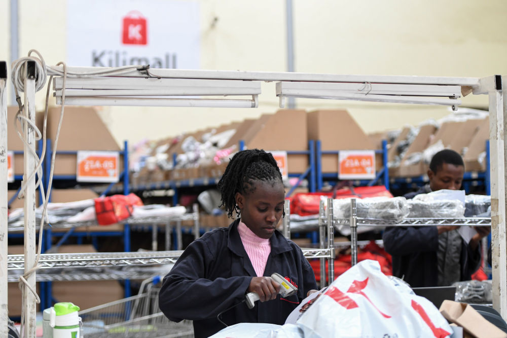 2023年7月28日,在肯尼亞姆洛隆戈,湖南長沙非拓信息技術(shù)有限公司旗下電商平臺Kilimall的員工在倉庫內(nèi)分揀貨物。新華社記者 李亞輝 攝