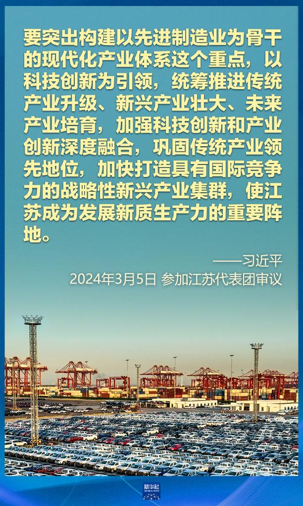 5日下午,習近平在參加他所在的十四屆全國人大二次會議江蘇代表團審議時強調,因地制宜發(fā)展新質生產(chǎn)力。