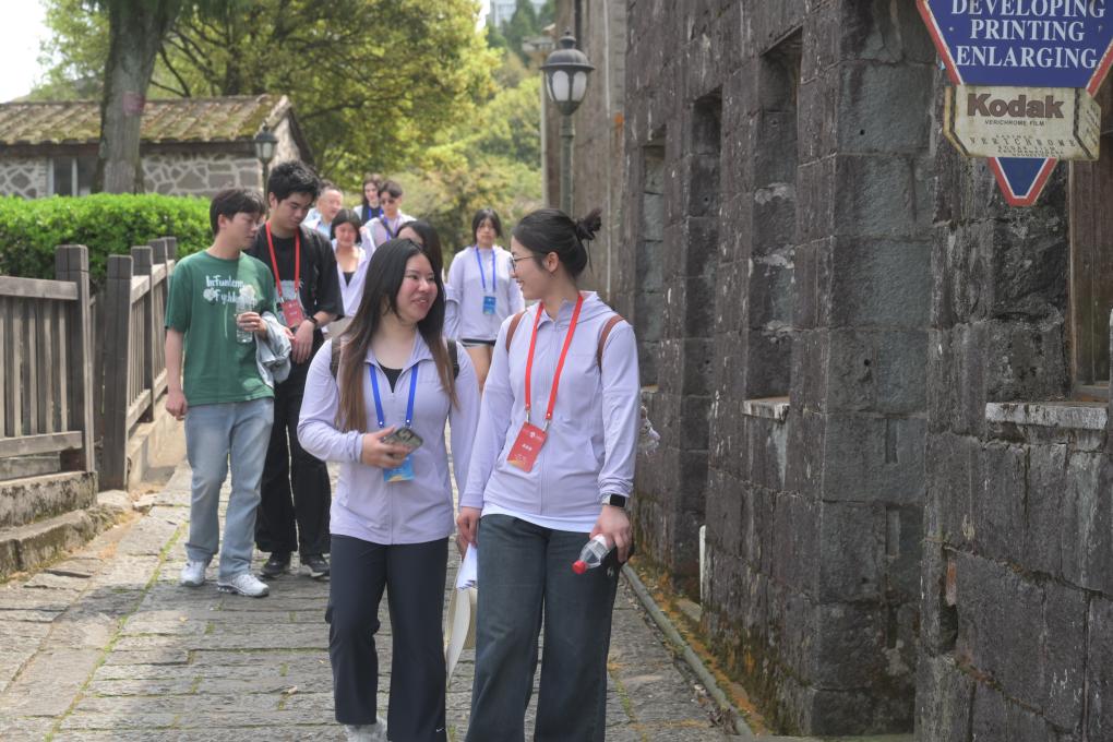 ??3月25日,福州大學(xué)外國(guó)語學(xué)院學(xué)生(前右)與美國(guó)太平洋大學(xué)學(xué)生(前左)在福州鼓嶺老街漫步交流。當(dāng)日,來自美國(guó)俄勒岡大學(xué)、布朗大學(xué)、奧斯威格高級(jí)中學(xué)等校的美國(guó)學(xué)生與福州大學(xué)學(xué)生齊聚福州鼓嶺,參加“讀懂中國(guó) 相約福建”友好交流活動(dòng)。兩國(guó)青少年走訪鼓嶺老街、萬國(guó)公益社、柳杉王公園等,感受鼓嶺百年中外交融歷史風(fēng)貌,了解中美交往往事,暢談期待與希望,再續(xù)中美民間友好交往的“鼓嶺故事”。 新華社記者林善傳攝