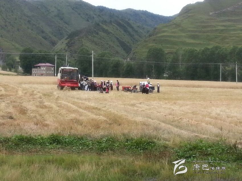 本網(wǎng)訊(孫學(xué)花 文/圖)近日,當(dāng)筆者來到康定縣新都橋時,一片片金黃的麥田展現(xiàn)在眼前,收割機(jī)不停的工作場面,拖拉機(jī)忙碌的來回在天地合牧民家中,豐收的喜悅嵌在牧民的臉上。“現(xiàn)在正是收割的季節(jié),我們根本不用人工,全是機(jī)器設(shè)備,割糧食用的是收割機(jī)是政府給了補(bǔ)貼的,運輸不用人工,都是用拖拉機(jī)拉,我們只需要上個車就完了,麥子曬干了直接用脫粒機(jī),磨面直接用電磨,可以說完全是農(nóng)機(jī)一體化運作,我們老百姓是越來越輕松了,糧食產(chǎn)量比以前大幅度提高,因為我們現(xiàn)在用科學(xué)種田,用復(fù)合肥、地膜等科學(xué)技術(shù),日子越來越幸福。”瓦澤鄉(xiāng)瓦澤村村民降初高興地分享著他家豐收的喜悅。