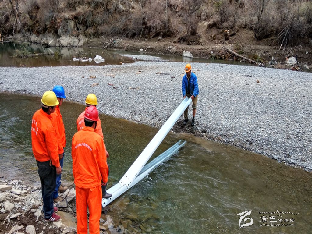 第一小組,由鄉(xiāng)城縣供電公司領導帶隊,身先士卒,肩扛繩拉地搬運電桿。