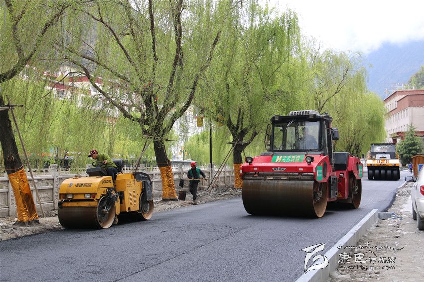 記者在下橋的一個(gè)溫馨提示牌上看到這樣的提示:“施工期間請(qǐng)大家注意安全,給你們帶來(lái)出行和生活上的不便敬請(qǐng)諒解,感謝各位的支持和理解。”記者沿折多河順流而下,在濱河路上看到,大型瀝青攤鋪機(jī)、壓路機(jī)一起行動(dòng),現(xiàn)場(chǎng)一派熱火朝天的景象。“現(xiàn)在鋪筑的是第一層瀝青,也是最關(guān)鍵的一道工序,必須要保證路面厚度、平整度。”正在負(fù)責(zé)監(jiān)督路面質(zhì)量的四川康立監(jiān)理公司員工田雪鋒對(duì)記者說(shuō)。