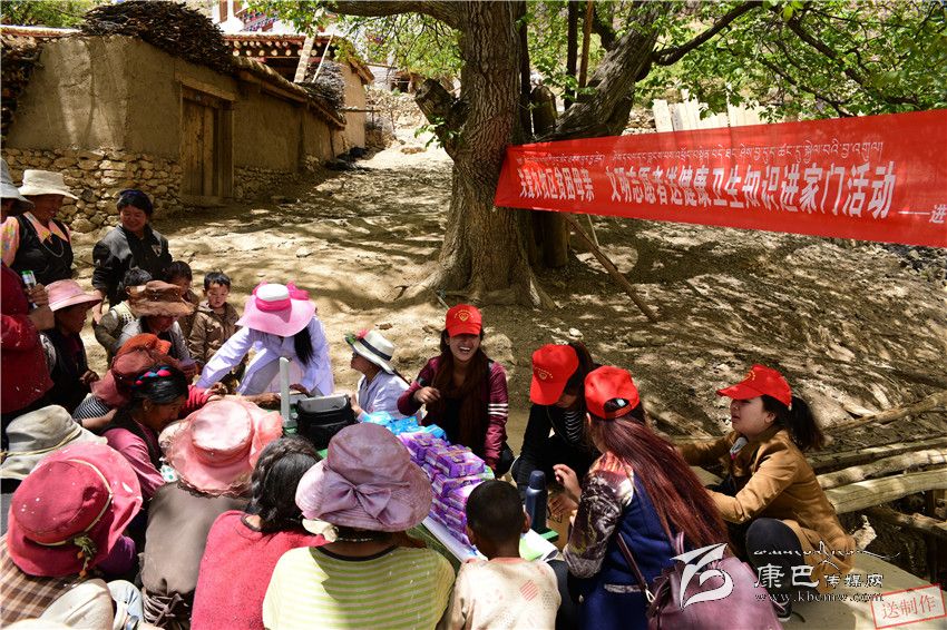 中心絨鄉(xiāng)安里頂村的四郎志瑪剛剛給地里的農(nóng)作物澆水回來,就發(fā)現(xiàn)村里來了一群戴著小紅帽的“不速之客”,他們周圍聚集著提前趕來的鄉(xiāng)親。兩位穿著白大褂的“小紅帽”正在為排著長隊的鄉(xiāng)親們免費(fèi)體檢,另外還有兩位戴“小紅帽”的女性志愿者召集婦女村民為她們講解健康衛(wèi)生知識,演示女性衛(wèi)生用品的使用方法。