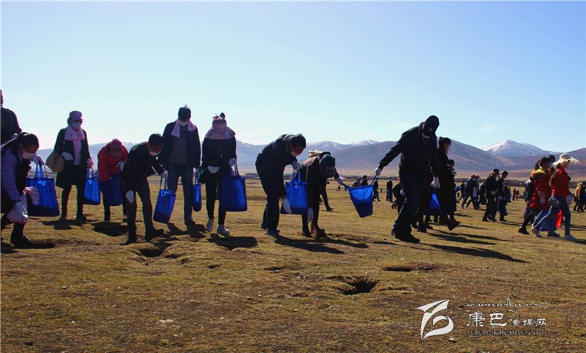 5月11日,距石渠縣城約5公里處的草原上人聲鼎沸,格外熱鬧。一大早,來(lái)自各單位的300余名黨員干部便聚集到了這里,身穿紅背心的青年志愿者們正忙著為大家分發(fā)口罩、手套等勞動(dòng)物品。而在人群最前端,一輛拖拉機(jī)滿載著一車(chē)類似飼料的東西,七八個(gè)人正有條不紊地將“飼料”卸車(chē)并分裝進(jìn)數(shù)百個(gè)藍(lán)色環(huán)保袋中。