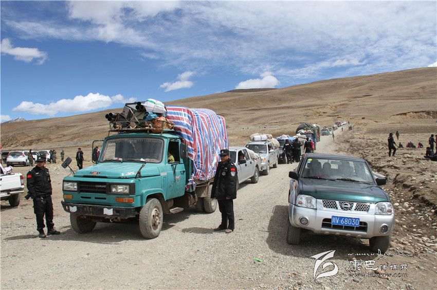 理塘公安干警為蟲草采集入山的群眾指揮交通。