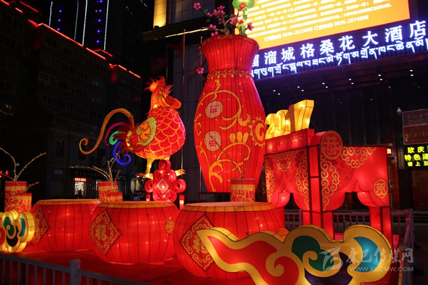 據(jù)該公司負(fù)責(zé)本次花燈設(shè)計(jì)的設(shè)計(jì)師鄭才學(xué)介紹,本次花燈每組主題不同,以全新的設(shè)計(jì)理念、歡樂(lè)祥和的氛圍、獨(dú)具特色的造型,向世人展現(xiàn)獨(dú)特的甘孜魅力。向陽(yáng)橋頭的花燈主題為新春快樂(lè),整個(gè)花燈呈火紅色,巨型“春”字搭配藏族繪畫中最常見(jiàn)但寓意深刻的吉祥八寶圖案,以及舞獅子、大紅燈籠、中國(guó)結(jié)等融為一體,為來(lái)到康定的客人第一時(shí)間送上熱情的新春?jiǎn)柡?;情歌廣場(chǎng)的花燈主題為鼓舞康定,以被譽(yù)為中國(guó)民間藝術(shù)瑰寶的大紅鼓作為人民歡慶盛世、贊美和諧的情感載體,充滿雄渾之氣,寓意著我州在時(shí)代發(fā)展的浪潮中擊鼓奮進(jìn)、得勝而鳴;情歌大廈門口的花燈主題為金雞送平安,以中國(guó)傳統(tǒng)生肖年文化為背景,配合中國(guó)結(jié)和爆竹,喜慶而不失莊重,寓意著為全州人民送去平安吉祥;將軍橋頭的花燈主題為童子賀歲,火紅的燈籠搭配喜慶的福娃及爆竹,為全州各族人民送上新年的祝福;17隊(duì)三岔路口的花燈主題為和諧康定,巨大的荷花藝術(shù)造型結(jié)合動(dòng)感的LED光源,造型高低錯(cuò)落,寓意和諧、和美,體現(xiàn)在州委、州政府的堅(jiān)強(qiáng)領(lǐng)導(dǎo)下,人民安居樂(lè)業(yè),和諧美滿。最霸氣、最吸引人的當(dāng)屬情歌公園主題為吉祥多福的花燈,整個(gè)花燈由六個(gè)直徑一米半左右的福字燈籠,環(huán)繞一個(gè)直徑達(dá)3米左右的福字燈籠組合而成,主燈籠的燈柱高大而厚重,環(huán)繞的六個(gè)燈柱上配有吉祥八寶圖案,寓意著全州物產(chǎn)豐富,人民的生活紅紅火火,一年更比一年好。