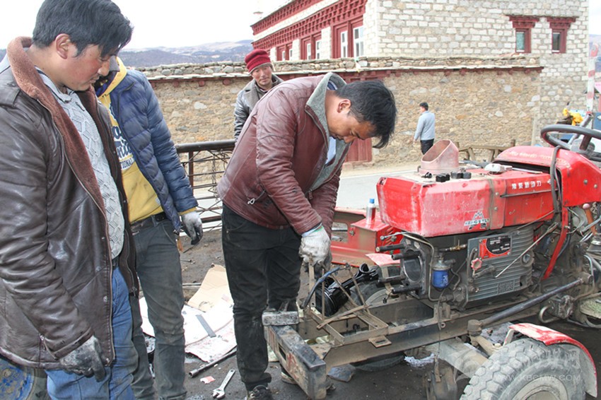 有的人家農(nóng)機(jī)壞了,又不好拖運(yùn)到壓瑪維修店里的,只要一個(gè)電話,壓瑪就自己開(kāi)車到別人家里去修,不收出工費(fèi),只收維修費(fèi)。這樣的事情十分常見(jiàn)。今年2月20日晚上,格西村阿昂家里的拖拉機(jī)壞了,第二天一早又要用,壓瑪師傅騎著摩托車趕了7公里夜路,修好后只收了120元零件費(fèi)。阿昂說(shuō):“要是拖到縣城修,少了1000多元脫不了手,還不算吃住和耗費(fèi)的時(shí)間。”