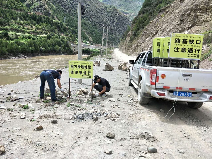 此次排查工作在原有的基礎(chǔ)上,增設(shè)安全隱患警示標(biāo)識標(biāo)牌近46處,并用油漆在道路沿線涂寫安全隱患標(biāo)志200余處。動用裝載機10次臺班,共組織人員50人次。清理邊坡垮塌140余處近21000立方米,清除路邊亂堆亂放的砂石、木材等40處,機械填補路面近900余處,保障公路有效路面同時,抓好后續(xù)的巡查、防范工作。同時,加大公路路況巡查力度,對易發(fā)生災(zāi)害的路段全面開展安全隱患排查,安排專人重點監(jiān)控公路沿河路段、高邊坡危巖路段及路基沉降路段,并設(shè)立警示標(biāo)志等提醒過往車輛及行人注意安全通行。
