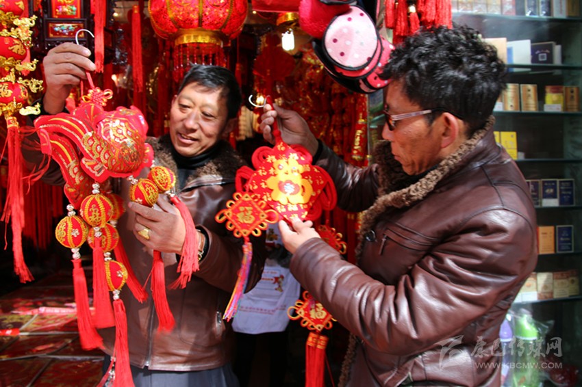 洛讓邊說(shuō)邊看著單子,“啊”了一聲,說(shuō):“差點(diǎn)忘了老婆大人交代的大事。”原來(lái),臨走時(shí),洛讓老婆特意叮囑他要買(mǎi)春聯(lián)、中國(guó)結(jié)和燈籠。好在側(cè)旁的郭達(dá)橋內(nèi)江小百貨店就有賣,買(mǎi)好之后,洛讓又特意挑選了一個(gè)金線編織的魚(yú)掛飾,“這個(gè)好,這個(gè)好,年年有余?!睗M臉充滿憧憬。