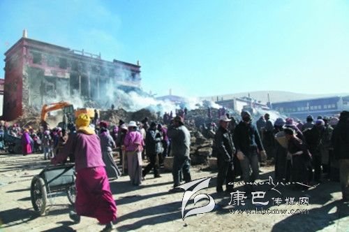 由于現(xiàn)場群眾和救災(zāi)人員非常多,擔(dān)心火災(zāi)蔓延和發(fā)生踩踏等安全事故,影響火災(zāi)的撲救。高城鎮(zhèn)黨委書記汪春康在帶領(lǐng)600余村民有序開展救火行動后,又帶領(lǐng)鎮(zhèn)干部、村干和寺管會僧侶一道,配合政法干警開展疏散群眾的解釋工作。帶領(lǐng)農(nóng)牧民群眾多少次沖入火海的他,面對勸離積極撲火的群眾,用沙啞的聲音不斷的解釋。苦心沒有白費,在大家的共同努力下,除縣級領(lǐng)導(dǎo)及專業(yè)撲救人員外,現(xiàn)場的群眾在凌晨2時左右很快得以全部疏散。