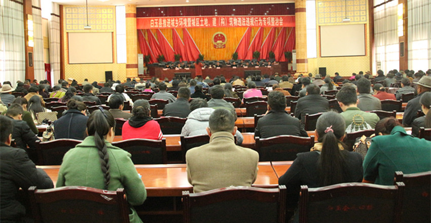 本網(wǎng)訊(白玉縣委中心報道組 徐平波 楊娟 攝影報道)為全面推進(jìn)“城鄉(xiāng)提升”和“鄉(xiāng)村振興”戰(zhàn)略,持續(xù)整治各種亂象,日前,白玉縣召開會議,對今年城鄉(xiāng)環(huán)境暨城區(qū)土地、建(構(gòu))筑物違法違規(guī)行為專項(xiàng)整治工作進(jìn)行了安排部署。會議要求堅(jiān)決依法整治違法占地、違規(guī)建設(shè)行為,堅(jiān)決從嚴(yán)打擊處理阻礙專項(xiàng)整治的行為,積極創(chuàng)造干凈、有序、優(yōu)美的城鄉(xiāng)環(huán)境。