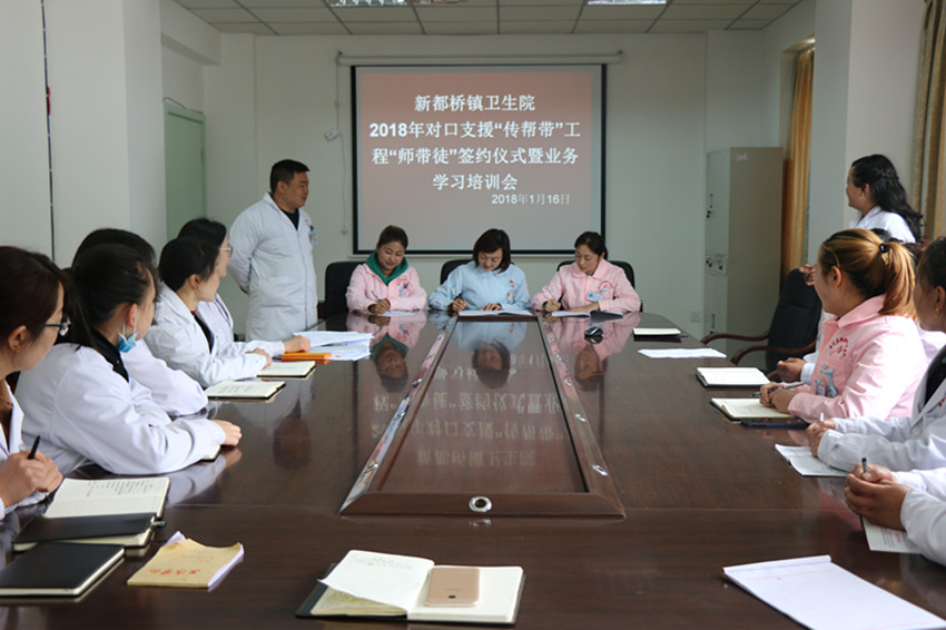 春風(fēng)沐浴、雨露滋潤(rùn);德隆情盛、高屋建瓴。為進(jìn)一步提升康定地區(qū)基層醫(yī)療衛(wèi)生機(jī)構(gòu)服務(wù)能力,打造一支有擔(dān)當(dāng)、有能力、可支撐的本土醫(yī)療衛(wèi)生人才隊(duì)伍。在對(duì)口幫扶工作中,康定市衛(wèi)計(jì)局高度重視本土人才培養(yǎng),將“傳幫帶”工作作為了重點(diǎn)。2018年1月8日,康定市疾控中心與都江堰市疾控中心通過(guò)座談商榷了“傳幫帶”幫扶方案,達(dá)成了共識(shí),下一步將通過(guò)對(duì)口幫扶,互訪交流、業(yè)務(wù)培訓(xùn),信息溝通共享等方式,在綜合管理、等級(jí)評(píng)審、人員能力建設(shè)、實(shí)驗(yàn)室檢驗(yàn)檢測(cè)能力建設(shè)、應(yīng)急處置能力建設(shè)等方面進(jìn)行重點(diǎn)“傳幫帶”。與此同時(shí),康定市第二人民醫(yī)院舉辦了對(duì)口支援“傳幫帶”工程“師帶徒”簽約儀式暨工作推進(jìn)會(huì)議。會(huì)上各位專家與選中的學(xué)員進(jìn)行現(xiàn)場(chǎng)簽約,雙方約定在今后的一年中,專家們通過(guò)理論培訓(xùn)、教學(xué)手術(shù)(操作)、教學(xué)查房、疑難病例討論、常見病多發(fā)病診治、開展新技術(shù)新業(yè)務(wù)等方面進(jìn)行指導(dǎo)、幫扶、協(xié)作,明確了各自的目標(biāo)任務(wù)和工作職責(zé)。