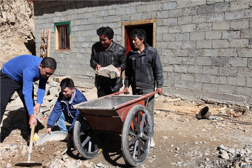 俗話說,一方水土養(yǎng)一方人,當一方水土不能養(yǎng)活一方人時,移民搬遷就成了最好選擇。這個行動遲緩的中年男子名叫洛絨,今年48歲。他眼前的這幢建筑面積100平方米的磚混結構單層房子,盡管室內地面還沒灌注水泥,房內還沒裝修,但他對即將入住新房的那份喜悅一覽無余:“你看,這房子的前面是河、后面是山,太陽一出來就能照著,住起來肯定舒服;這三間房子就有四個大窗戶,光線照得進來,里面肯定亮堂;這一進門就是客廳,兩邊各有一套大大的房間,裝修好后只要把家具家電一擺上,肯定漂亮;……”正當他說得津津有味時,鄉(xiāng)上負責易地扶貧搬遷干部馬煜和包村干部鄭剛突然出現(xiàn)了他的眼前,他滿是感激地說:“其實,我知道你們都很忙,用不著隔三差五過來幫我,我保證十天之內就把地面填平。況且再過幾天,我愛人就從山上挖蟲草回來了。有她打下手,兩個月內我們一家人肯定就能住進新房子啦!”