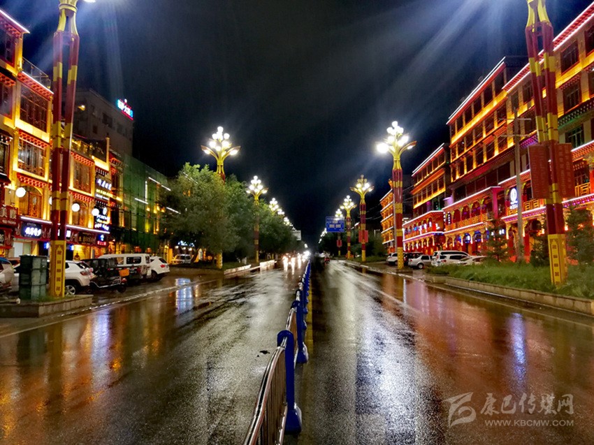 甘孜縣城夜景。