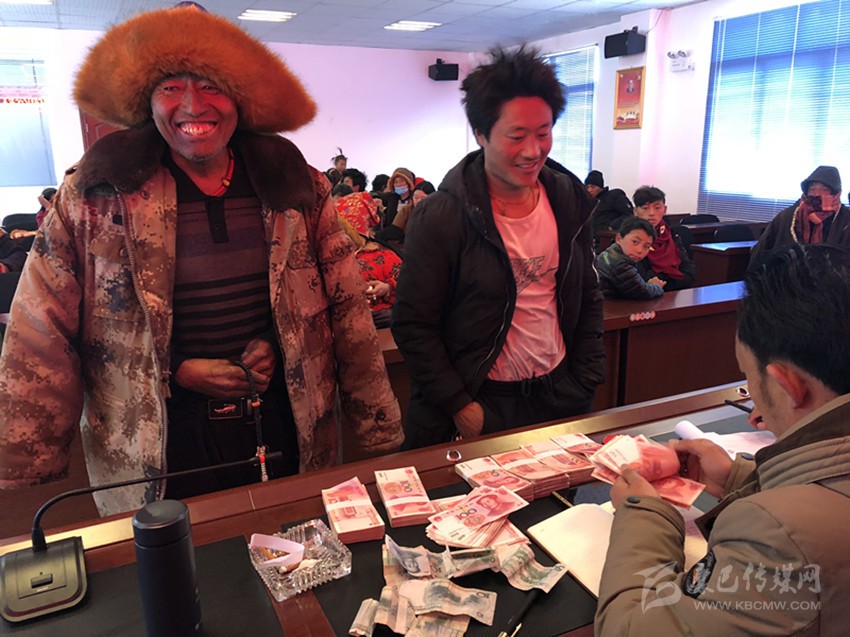 分紅現(xiàn)場,牧民開心地笑了。