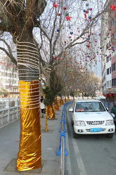 本網(wǎng)訊(記者 周華) 攝在馬年春節(jié)即將來(lái)臨之際,一批喜慶的新年裝飾亮相康定街頭,為節(jié)日的康定城增添了幾分喜氣。據(jù)康定縣市政管理局有關(guān)人士介紹,每年春節(jié),康定都要采取措施營(yíng)造節(jié)日氛圍。今年的節(jié)日氛圍營(yíng)造本著節(jié)儉、喜慶、熱烈的原則,在色調(diào)上突出傳統(tǒng)的紅色,融入了福、春、馬年生肖等元素,既有傳統(tǒng)的特點(diǎn),又有民族特色。據(jù)了解,這些節(jié)日裝飾主要分布在城市街區(qū)、廣場(chǎng)及繁華地段。在有城市行道樹(shù)的街道,則采用裝飾與燈光結(jié)合的方式,突出城市的動(dòng)感,使夜晚的康定城更加浪漫而富有生機(jī)。