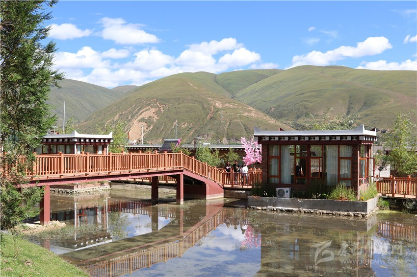 走進(jìn)山莊,一排排仿道孚民居外觀的房子整齊排列掩映在柳樹(shù)間,四面落地玻璃窗的設(shè)計(jì)讓陽(yáng)光溫暖整個(gè)房間,潺潺的小溪縈繞其間,不遠(yuǎn)處蒼措嘎布海子的蘆葦叢在微風(fēng)中輕輕擺動(dòng),幾只野鴨子在水上嬉戲,特色民居增加了民族韻味,漫步木制棧道,眼前呈現(xiàn)出美麗鄉(xiāng)村的畫(huà)卷。