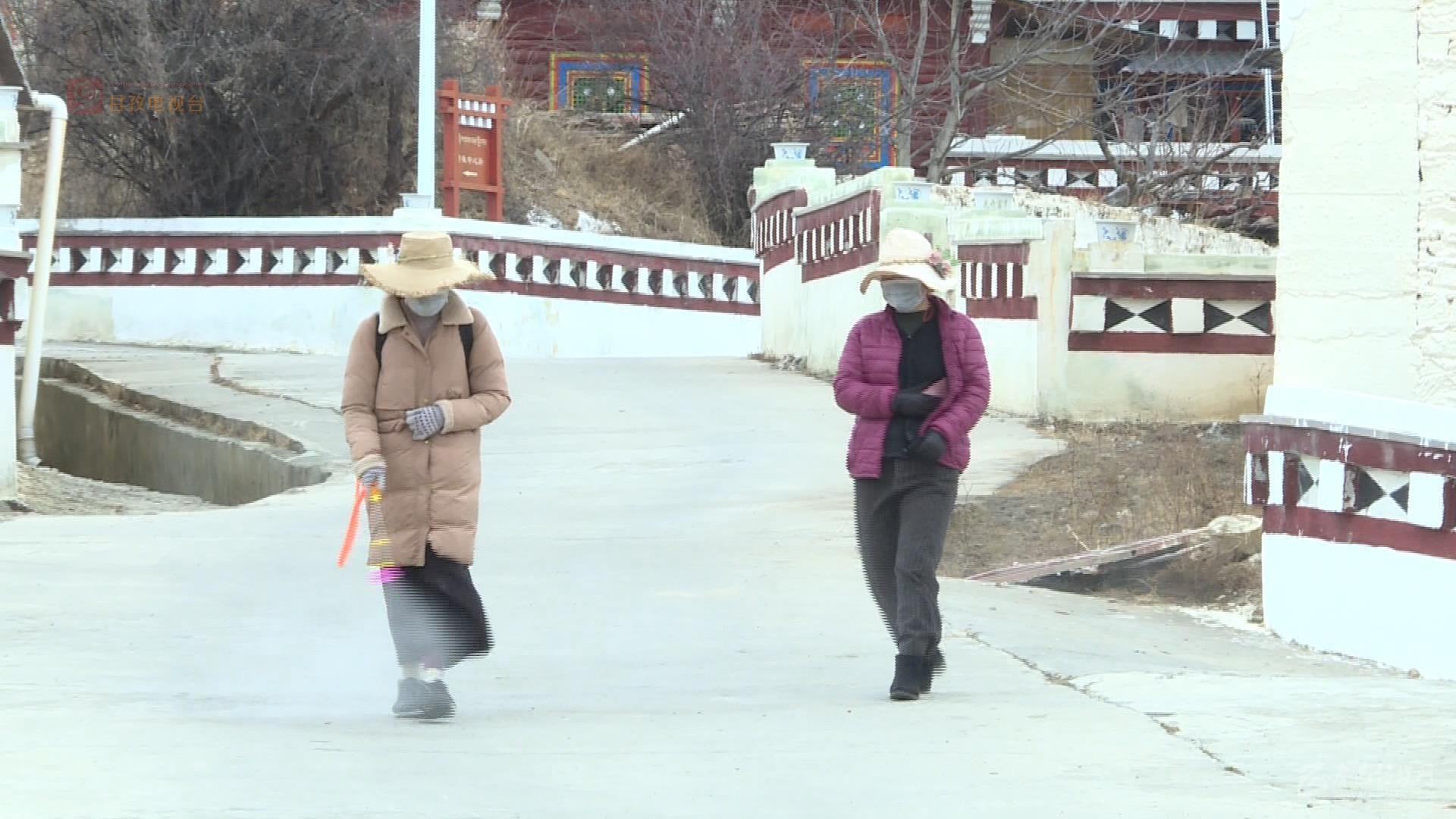 除了7個州縣級卡點外,在各鄉(xiāng)村同樣是嚴防死守,筑牢了嚴控疫情的第一防線。在距離縣城三公里的格西鄉(xiāng)若珠村村口,我們看到村黨支部書記澤機和村委會主任尼瑪降澤頂著寒風(fēng)依然駐守在卡點上。尼瑪降澤介紹說全村有65戶283人,他說支部書記負責(zé)村口卡點的24小時值守,其余六名村干部就負責(zé)包戶巡邏檢查,每天村里的消毒,村民的體溫監(jiān)測統(tǒng)計等等,大家都繃緊著嚴防死守這根弦。