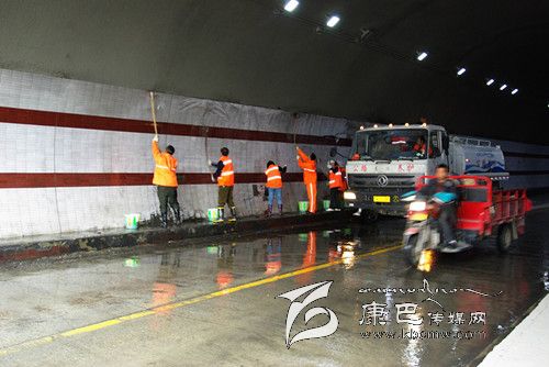 4月2日,瀘定公路分局瀘定黨小組組織機(jī)關(guān)黨員干部開展黨員義務(wù)勞動(dòng)活動(dòng),對(duì)國(guó)道二康路紅軍橋隧道進(jìn)行了大清洗。清洗采用以隧道清洗車為主、人工清洗為輔的作業(yè)方法,并安排專職交通指揮人員配合作業(yè)人員對(duì)清洗路段進(jìn)行了交通管制,以確保作業(yè)人員及過(guò)往車輛行人的安全。同時(shí),組織公路養(yǎng)護(hù)人員對(duì)兩條省道隧道內(nèi)的燈具、內(nèi)壁和反光標(biāo)牌標(biāo)線等進(jìn)行了清洗。(賀淑明 攝)