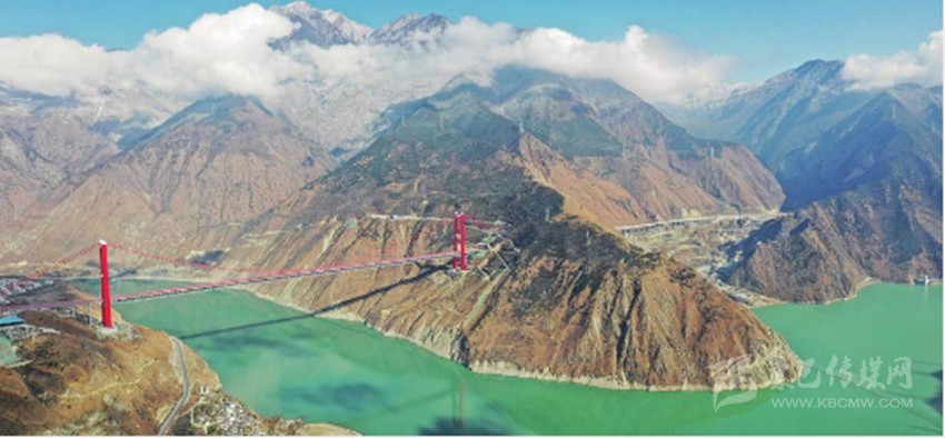 沿河逆流而上,一座氣勢磅礴、色彩壯麗同時(shí)凝結(jié)無數(shù)科學(xué)技術(shù)成果的現(xiàn)代化大橋“飛虹跨塹”,這是雅康高速瀘定大渡河大橋。