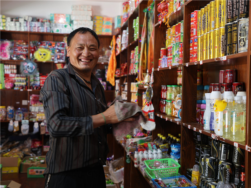 一大早,村民彭措就開始忙里忙外的收拾著小超市和茶樓,掃地、拖地、擦拭商品……每一個環(huán)節(jié)他都做得一絲不茍,他所打理的這個小超市和茶樓是村里的集體經(jīng)濟(jì)之一,每個季度都由村民們輪流負(fù)責(zé)日常經(jīng)營。這個不大的村子共有4個組67戶327人,每個季度從四個組中安排三戶村民負(fù)責(zé)村集體經(jīng)濟(jì)的運營。