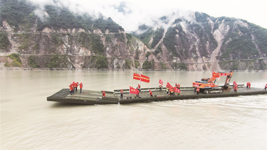 在消防員和其他救援隊(duì)伍完成救援工作的時(shí)候,另一支身著迷彩服、衣服上印有“四川民兵”字樣的隊(duì)伍,扛著鐵鍬等工具從被阻斷的公路上出現(xiàn),他們帶來(lái)另一個(gè)好消息:磨崗嶺村通向磨西鎮(zhèn),因地震被阻斷的唯一一條公路已經(jīng)打通。目前,行人可以通行,但暫時(shí)不能通車。
