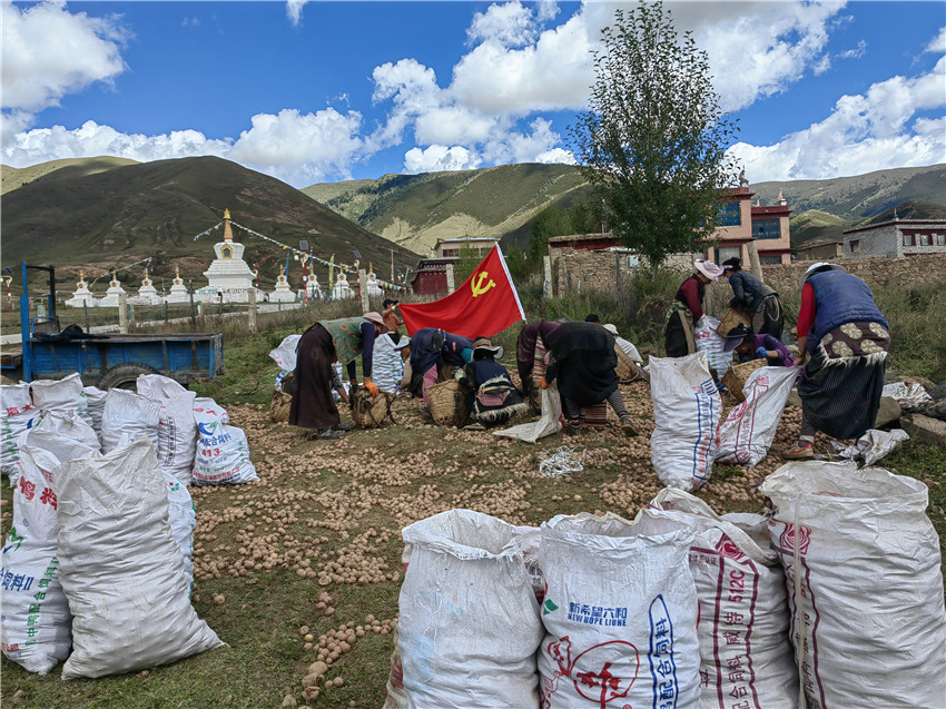 “現(xiàn)在黨的政策好啊,我們的種子都是國家發(fā)的,還有農(nóng)技員指導(dǎo)種植,現(xiàn)在土豆畝產(chǎn)基本都在4000斤左右,相比傳統(tǒng)自己留種,產(chǎn)量大幅提升。以前我們都是自給自足,現(xiàn)在留夠口糧還能將多余的土豆拿到市場上銷售。我們木拉的土豆口感、品質(zhì)都是最好,在市場上很暢銷,價(jià)格都在2元一斤以上,共產(chǎn)黨嘎真切(藏語:謝謝的意思)。”看著滿滿一袋的土豆,村民丁真降措擦了擦額頭的汗高興地說。