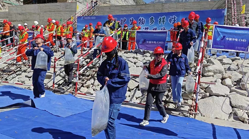 “今年放流的魚苗種類繁多,有四川裂腹魚、短須裂腹魚、長絲裂腹魚、裸腹葉須魚、軟刺裸裂尻等,其中,裸腹葉須魚為中國瀕危動物紅皮書‘易危’魚類,四川裂腹魚為四川省重點保護魚類。”華電金上葉巴灘分公司負責人說,為減少工程建設對魚類及水生生物的影響,公司建立了萬里長江第一級魚類增殖放流站,是國內首個截流當年開展增殖放流的水電站,自2019年首次舉辦試驗性增殖放流活動以來,累計放流106萬尾特有珍稀魚苗。同時為進一步推進金沙江魚類種群恢復、水域生態(tài)環(huán)境的改善,公司還追加了1.7億元的環(huán)保投資,增設了一臺生態(tài)備用機組,提高運行期生態(tài)下泄流量的安全度和保證率。聯(lián)合華中農業(yè)大學開展黃石爬鮡、姚氏高原鰍等遠期放流魚種人工繁殖技術研究,采取分層取水技術,有效改善水庫下泄水溫,為魚類繁殖生存提供適宜條件。