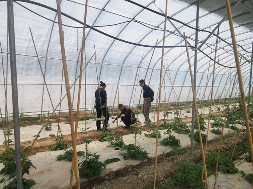 農(nóng)技員在蔬菜大棚指導(dǎo)農(nóng)戶(hù)進(jìn)行科學(xué)管護(hù)。