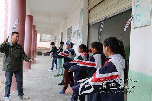 關(guān)軼為校羽毛球隊做現(xiàn)場輔導(dǎo)。