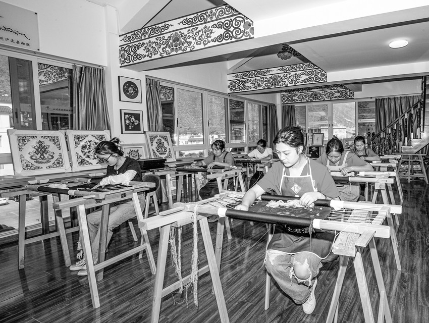 據(jù)烹壩鎮(zhèn)副鎮(zhèn)長王昇介紹,2018年在省州縣婦聯(lián)的大力支持和幫助下,烹壩鎮(zhèn)成立了“指尖藏花貴瓊刺繡”合作社,150余名婦女加入到合作社,參與刺繡。自從成立了合作社,村里的婦女們背著娃,繡著花,養(yǎng)活自己,養(yǎng)活全家。“指尖藏花貴瓊刺繡”合作社的“貴瓊藏繡”已成為烹壩鎮(zhèn)婦女增收的好項(xiàng)目。婦女們有事做了,干群關(guān)系也更加緊密,老百姓遇到問題也更加愿意找黨員、找干部。同時(shí)“貴瓊藏繡”這種康巴地區(qū)特有的非遺傳承技藝也得到了很好傳承和發(fā)揚(yáng)。