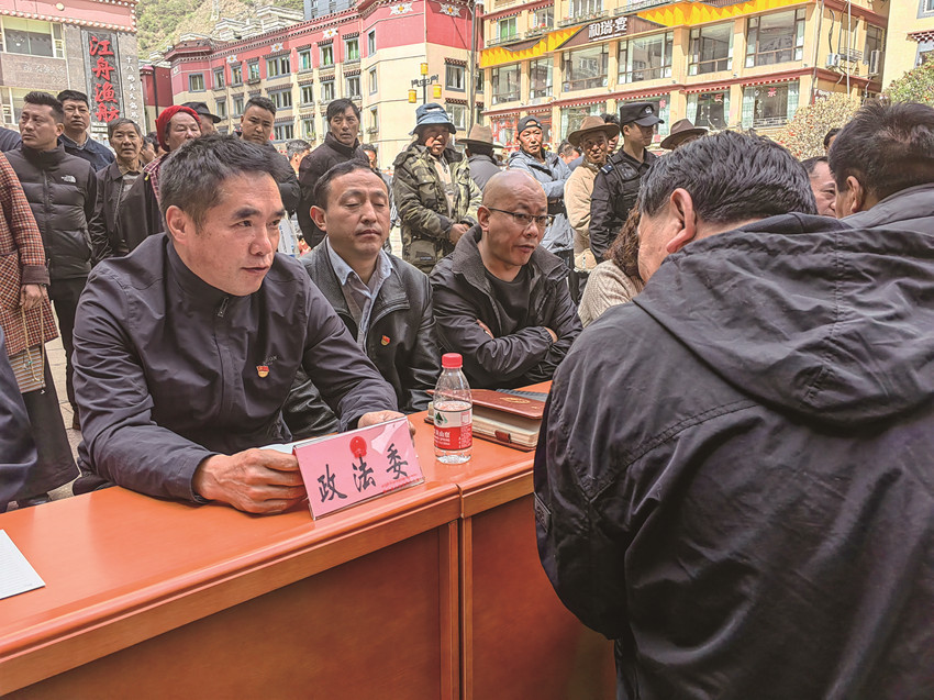 政法委員統(tǒng)籌調(diào)度,充分發(fā)揮鄉(xiāng)(鎮(zhèn))政法委員統(tǒng)籌作用,搭建以網(wǎng)格員、人民調(diào)解員、綜治員等的基層聯(lián)絡(luò)群,協(xié)同法庭法官、駐鄉(xiāng)檢察官、轄區(qū)民輔警等進(jìn)村組(社區(qū))、進(jìn)學(xué)校、進(jìn)寺廟、進(jìn)工地、進(jìn)蟲草山等地,常態(tài)化摸排掌握社情民意,確保及時發(fā)現(xiàn)矛盾隱患,打通基層社會治理的堵點和難點,助力實現(xiàn)“小事不出村、大事不出鎮(zhèn)、矛盾不上交”目標(biāo)。