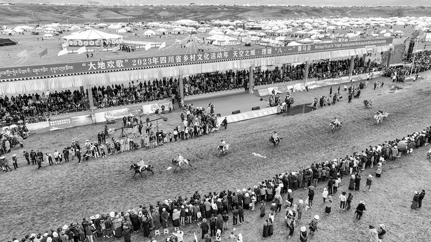 “中國藏族賽馬文化之鄉(xiāng)”“理塘八一傳統(tǒng)賽馬會”是四川涉藏州縣規(guī)模最大的賽馬會,賽馬傳統(tǒng)延續(xù)長達(dá)400余年?!霸缇吐犝f過馬背上的理塘,今天終于親眼所見,實(shí)在不虛此行。草原追風(fēng),策馬飛奔,蹄聲如雷,震徹山野,這是多么壯美的理塘萬馬奔騰圖??!多想遠(yuǎn)離城市的喧囂,策馬揚(yáng)鞭,馳騁草原,豪邁瀟灑,勇往直前。以后每一年的理塘賽馬活動,我一定會帶上家人再來這里,因?yàn)槔硖?,可謂是心靈棲息的地方?!痹凇按蟮貧g歌”2023年四川省鄉(xiāng)村文化活動年——天空之城·理塘“八·一”賽馬會上,來自北京的游客石磊被當(dāng)?shù)刭愸R文化吸引,和朋友玩得不亦樂乎。