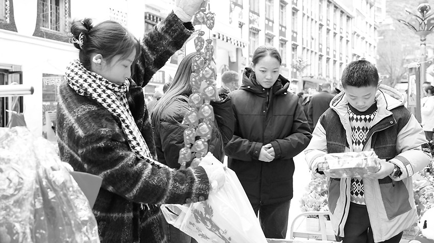 一進(jìn)入臘月,年的味道越來越濃,丹巴縣家家戶戶采辦年貨的熱情也逐漸高漲,所有商店和集貿(mào)市場人頭攢動(dòng),開始熱鬧起來。人們忙著選購各種商品,迎接新年的到來。