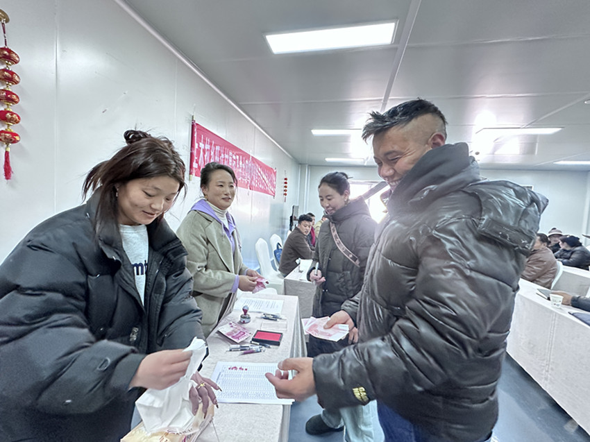 在隨后舉行的分紅儀式上,鄉(xiāng)黨委書記、公司負(fù)責(zé)人分別就合作方案、相關(guān)政策進(jìn)行了宣講,還對(duì)集體經(jīng)濟(jì)進(jìn)一步發(fā)展等進(jìn)行了分析和總結(jié),簽訂了深化合作協(xié)議。分紅現(xiàn)場(chǎng),村民們有序地對(duì)賬、簽字、領(lǐng)取分紅,臉上洋溢著幸福的笑容。大家表示這一切都要感謝黨和政府的關(guān)心關(guān)懷和好政策,更加堅(jiān)定了聽黨話、感黨恩、跟黨走的信心和決心。據(jù)悉,此次分紅主要是旺達(dá)村于2023年7月投入奶茶生產(chǎn)設(shè)備的收入,此次25戶群眾分得12500元現(xiàn)金,價(jià)值7500元的糌粑奶茶,共計(jì)20000元。