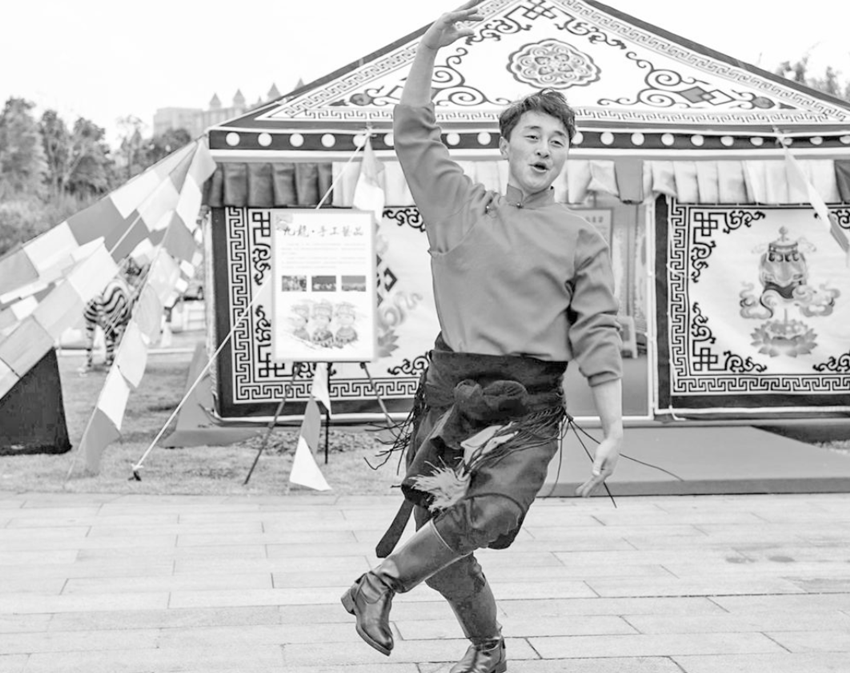 近日,成都青白江櫻花賞花季現(xiàn)場(chǎng),九龍?zhí)厣a(chǎn)品展銷(xiāo)及文化交流區(qū)中,一群藏族姑娘、小伙正在為游客表演康巴歌舞。由兩名小伙表演的舞蹈《雪域驕子》贏得觀(guān)眾陣陣掌聲,他倆粗獷奔放的舞姿,時(shí)而化作展翅的雄鷹,時(shí)而化作奔騰的駿馬,展示出康巴漢子的熱情、勇敢。其中一位小伙子的表現(xiàn)力很強(qiáng),深厚的舞蹈功底給大家留下了深刻的印象。他就是來(lái)自九龍縣格?;ㄋ囆g(shù)團(tuán)的演員來(lái)讓次稱(chēng)。