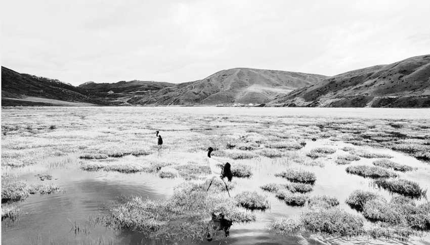 德格縣馬尼干戈鎮(zhèn)的珠姆省級濕地公園,水面映照著藍天白云,野花和綠草隨風輕曳,處處洋溢著生機。閑庭信步的兩只黑頸鶴,成為這里的別樣風景。 益西巴絨 攝