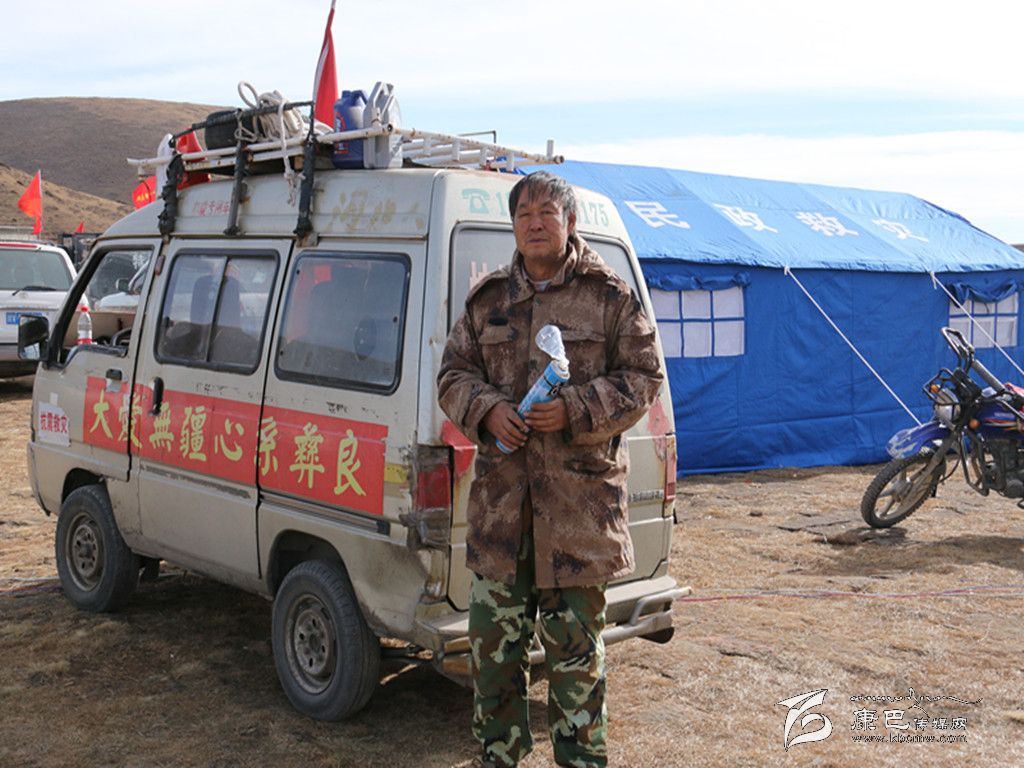 李英俊用58小時(shí)的風(fēng)雨兼程,在經(jīng)歷了兩次汽車拋錨以后,終于在25日下午抵達(dá)了木雅祖慶小學(xué)臨時(shí)安置點(diǎn)。