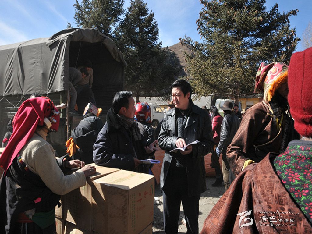 康定縣紀(jì)委工作人員在塔公鎮(zhèn)核查救災(zāi)物資發(fā)放情況。