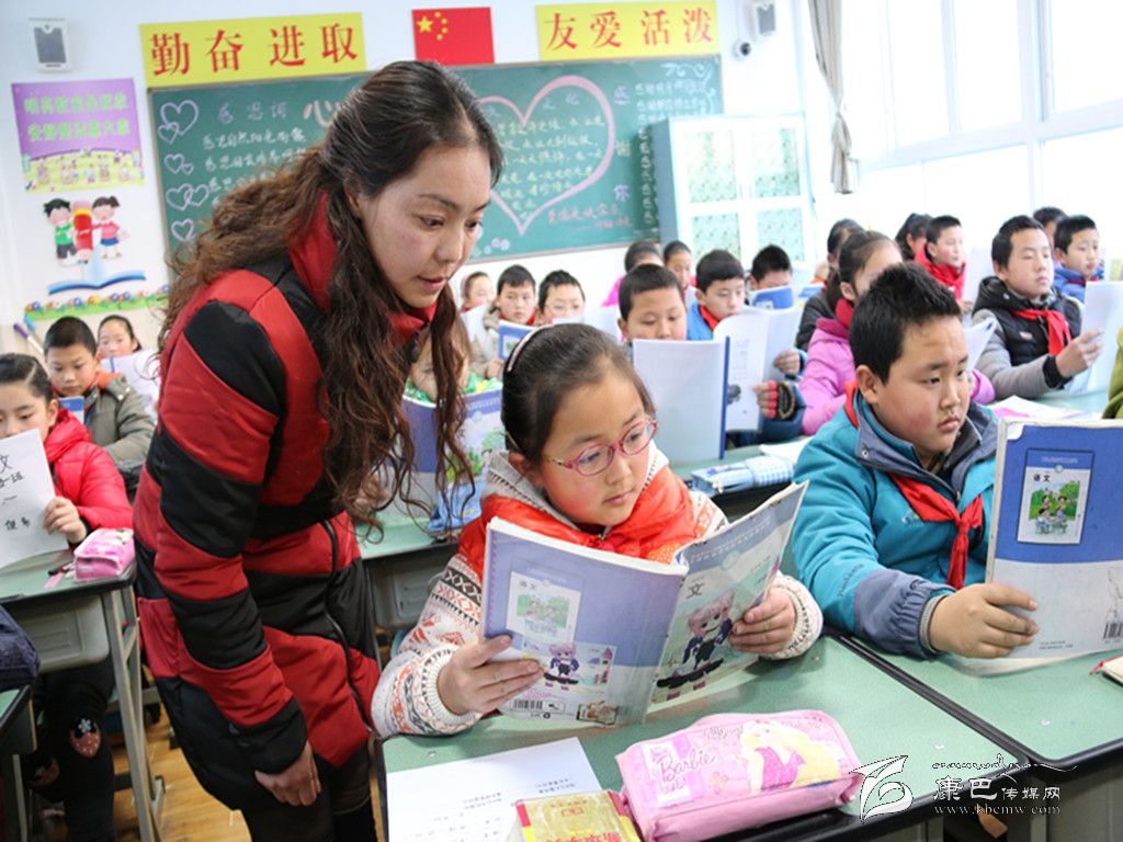 曹萍正在輔導學生。