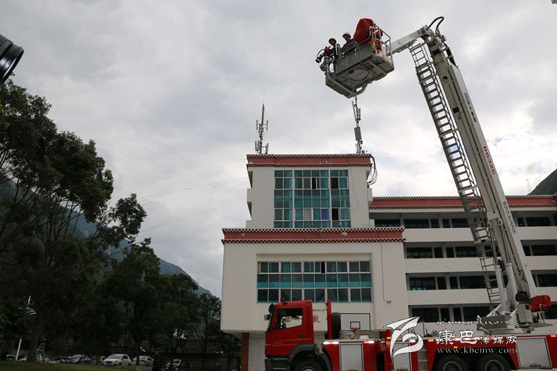 為使參訓學生更好地將此次學習到的消防知識融于實踐,消防部門還在校園操場,組織參訓學生開展了油盆火災撲救,現(xiàn)場學生紛紛踴躍報名,現(xiàn)場氣氛十分活躍。在消防官兵的指導下,學生們分為三組,利用手提式干粉滅火器進行了油盆火災撲救演練,提瓶、拔銷、對根、壓柄一氣呵成,火勢被順利撲滅。隨后,消防官兵又向學生們演示了單干線出兩支水槍滅火操,并介紹了甘孜州最尖端的消防車輛器材及裝備,組織參訓新生進行了一場32米登高平臺車高空作業(yè)體驗。按照操作規(guī)程,消防官兵協(xié)助參加體驗的學生戴好防護頭盔,扎上綁有安全繩的防護腰帶,順利登上了登高平臺。在消防官兵嫻熟的操作技術下,登高平臺勻速上升到20米高空,現(xiàn)場傳來了一陣陣驚嘆聲。