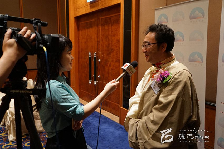 2015年香港推介會(huì)上,州委副書記、州政府州長(zhǎng)益西達(dá)瓦接受記者采訪。