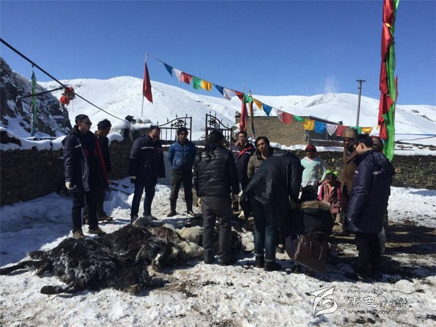2月22日,人保公司駐點協(xié)保員就陸續(xù)接到牧民牦牛死亡的消息并開始核查處理,因大雪持續(xù),進展緩慢。26日,雪后初晴,人保甘孜分公司黨委總經(jīng)理室立即根據(jù)各地匯報的災(zāi)情組成查勘、理賠工作組,下午,由9人組成的理賠應(yīng)急小隊抵達塔公鄉(xiāng)。截至目前,公司已經(jīng)完成了色齊卡村、日沙1、2、3等7個村莊核查工作,確認(rèn)因雪死亡投保牦牛近500頭。“下雪前好多牦牛都在山上,備用草料也較少,估計全鄉(xiāng)總數(shù)會超過1000頭。”